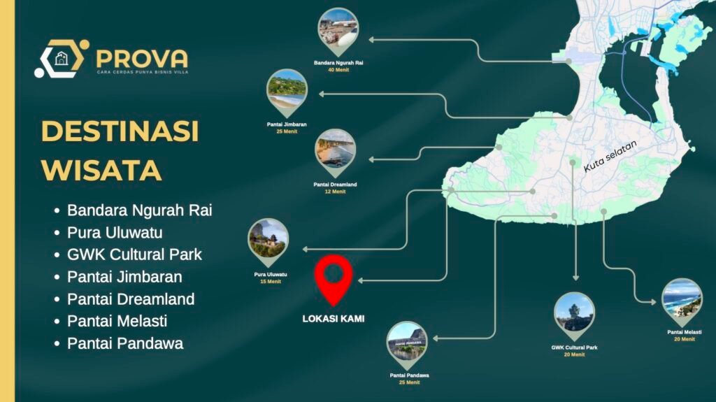 PROVA memberikan solusi sistem titip kelola yang dikelola oleh profesional, serta sistem bagi hasil yang adil berdasarkan performa penjualan aktual. Ini adalah solusi modern untuk siapa saja yang ingin menjalankan bisnis villa dengan cara yang cerdas, praktis, dan terhubung secara nasional.